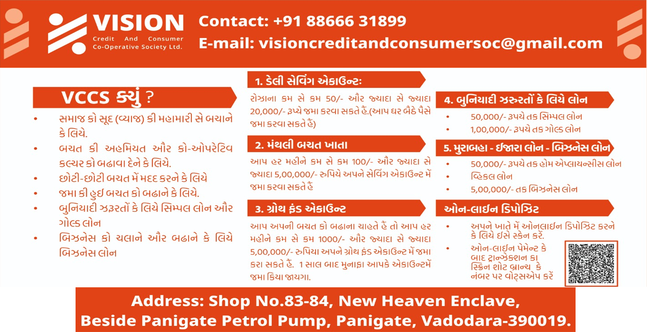 Welcome to Vision Credit & Consumer Co-Operative Society, based at Vadodara, Gujarat